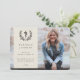 A formal but modern graduation photo announcement for any type of medical qualification. Featuring a full-bleed photo with a colour overlay and the caduceus symbol surrounded by a laurel wreath. The template text for the graduate’s details is completely customisable, so the font size, style, colour and placement can be changed. The back features a solid coloured background and template text for a longer message. If you would prefer to include no text on the back, just delete it before ordering. If you would prefer a photo on the back of the card, delete both the coloured background and the template text and upload your own photo. The design is available in other colours and with designs for specific medical qualifications (MD, RN, DO) in my store.