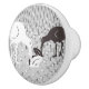 The round drawer knob shows a monochrome grey oyster-catcher silhouette design.