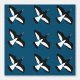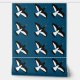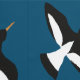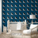 Blue wallpaper with drawing of a flying oystercatcher pattern