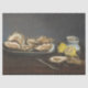 This design features a painting by the French artist Edouard Manet (1832–1883). It is a still-life painting showing a table with freshly prepared oysters, ready to be eaten; there is also an oyster fork and a sliced lemon that is intended to be squeezed over the oysters. It is a beautiful depiction of fine food and French cuisine. The original artwork was painted in 1862.