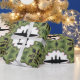 P-38 Lightning Christmas in scalloped white frame on festive green background. This wrapping paper is available in many different widths and lengths. Perfect for any fan of World War 2 combat aeroplanes.