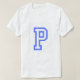 This is a Men's Basic T-Shirt. The shirt is comfortable, casual and loose fitting. The heavyweight t-shirt will easily become a closet staple. Made from 100% cotton, it's unisex and wears well on anyone and everyone. The t-shirt is white and there is a large letter P on the front of the shirt. The style of the letter is Yearbook. They have double-needle stitched the bottom and sleeve hems for extra durability. The t-shirt fits true to size. The shirt is 100% cotton.