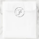 P Monogram Faux Silver Envelope Or Favour Seal. These classic round stickers are printed with non metallic ink on a flat sticker to look like silver. They are not beveled or embossed monograms but are designed to look like they are beveled or embossed monograms. These silver monogram seals are printed on a white background unless you select a different colour background before you proceed to checkout. In addition to being pretty wedding stationery supplies, these elegant wedding invitation envelope seals also make great monogrammed custom Christmas card seals, personalised holiday greeting card envelope seal stickers and customised Xmas card monogram seal stickers.