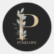 Letter P monogram floral. Letter P in golden brown texture accented with green watercolor compound leaves, flower blossoms and melted gold splashes. Personalised with name in matching font.