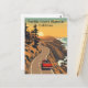 Take a scenic ride along California’s iconic Pacific Coast Highway with this vintage-style travel postcard. Featuring winding roads along dramatic cliffs, a cruising convertible, and the Pacific Ocean at sunset, this illustration captures the spirit of the ultimate American road trip. A must-have for collectors and travel lovers alike.