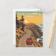 Take a scenic ride along California’s iconic Pacific Coast Highway with this vintage-style travel postcard. Featuring winding roads along dramatic cliffs, a cruising convertible, and the Pacific Ocean at sunset, this illustration captures the spirit of the ultimate American road trip. A must-have for collectors and travel lovers alike.