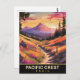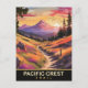 Pacific Crest postcard. Sunset on the pacific crest trail with mountains behind. Illustrated travel postcard