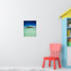 Poster print of a desert or uninhabited adventure Island with palm trees and a dark blue sky in the turquoise water of a lagoon in the Pacific archipelago French Polynesia