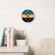 This stylish teal, orange, black, and white clock will definitely stand out . The large bold numbers make telling time very easy.