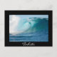 Photo postcard of a big surfing wave breaking in the Pacific Ocean with a black border and in white the text 'Tahiti'.