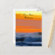 This beautiful postcard shows a spectacular, colourful sunset photo taken from a peaceful beach in Ocean Shores, Washington. Layers of clouds give the impression of an abstract painting. Orange, grey, blue, and yellow pastel hues are soothing and inspiring. The village of Ocean Shores boasts miles of gently sloping sandy beaches.