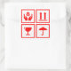 Handle with care, orientation up, fragile contents, and keep dry in this single label.
