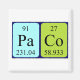 Paco spelled out as Pa Co (Protactinium Cobalt) on a magnet for the scientist in you.