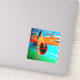 The stick looks amazing. Unfortunately, it would not stick on our suitcase as it was textured. When we found a non-textured (smooth) suitcase, the sticker stuck and looks great. The printing looked awesome.