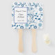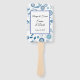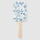 This paddle fan is shown with a lovely blue and white floral print with sample names and date.