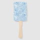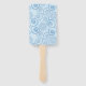 This paddle fan is shown with a lovely blue and white pearls print with sample last name.