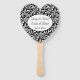 This paddle fan is shown with a lovely black and white damask print with sample names and date.