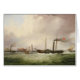 The painting depicts a paddle steamer off Perch Rock in the Mersey. The paddle steamer in the painting has always been thought to have been the "Ariel". There is also discussion about whether the painting is the PO steamer Ariel or not. The Ariel was a paddle steamer that continued to be the Dover packet until 1846. The Ariel arrived in Aspinwall on May 10 with treasure and passengers. The Ariel was captured by the Alabama in 1863