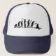 This design illustrates the evolution of the human species; from a primitive jungle dwelling primate to a tool using, water paddling denizen.