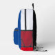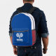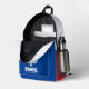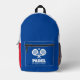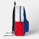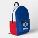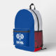 Padel Backpack with custom colour design options. Cool bag with crossed racket and ball logo design plus humourous quote. Add your own personalised text optionally. Handy for padel players, fans, coach, club trainer, party, event etc. Padel Eat Sleep Play Repeat. Red white and blue example.