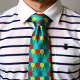 Absolutely. This necktie is a full-on table tennis fever dream—like someone took a sports bar, dipped it in turquoise, and said “make it fashion.” The red and yellow paddles are locked in a never-ending rally across a hexagon court that screams retro arcade meets boardroom rebellion. It’s the kind of tie that says, “Yes, I take meetings. But I also dominate ping pong tournaments at lunch.”