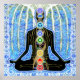 Beautify your yoga studio or meditation room with this visualisation showing the chakras and the sushumna [ida and pingala] overlaid on the silhouette of a meditating person, floating in a radiance of blue, turquoise and white aura pulses. High resolution, extreme detail, works on all sizes.