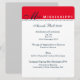 This awards ball program is created on an invitation/menu card. Made on Signature 120lb. White paper with Red header and deep Navy Blue text. We've laid out the template for you, simply choose selection menu at right to make your changes. Customise this further by adding a transparent vector of your logo, add personal name, change text or colours or paper choices to your liking; Or buy as is. REMINDER NOTE-please double check your text, pageant title/name is listed several times.To change header colour, select the "e" at selection menu at right. Great for any pageant awards ball. Combination pageant ball program and menu card.