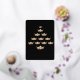 Pageant Crown Christmas card is shown in the flat style with a black background and pretty gold crowns in a shape of a tree.