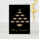 Pageant Crown Christmas card is shown with a black background and pretty gold crowns in a shape of a tree.