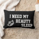 Lumbar style pillow shown in black/pink with a litho print of a pageant crown and says I Need My Beauty Sleep. Customise this item or just buy as is.