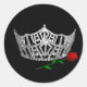 Round sticker shown in black with a photo print of a pageant queens crown and a red rose. Customise this item or buy as is.