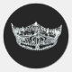 Round sticker shown in black with a photo print of a pageant queens crown. Customise this item or buy as is.