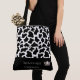 This cute stylish large tote bag is shown in a spotted cow print with a colour block style with a pageant crown and custom text. Text shown reads "