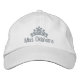 Shown in white with a silver colour crown and text. This cap has front text only shown with your title. Adjustable back.