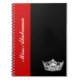 Notebook shown in black with a red accent panel and a litho print of a pageant queens crown. Customise this item and change the text to what you need.