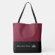 This cute stylish large tote bag is shown in a Wine and Black color block style with a silver pageant crown known as the afterglow series. Custom text.