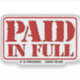 ►IMAGE: The words, “PAID IN FULL” - simple, yet bold in stencil form as a Seal of Salvation. ►COLORS: Red and Black. ►TEXT: “Paid in Full / It is finished” John 19:30. . . ►Designed for men & women, all ages, who believe the death of Jesus paid wiped away mankind’s sin debt completely and forever. (DESIGN by Paula Bragg)
