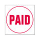 This rubber stamp design features the word "PAID" within a circular outline. It could be used to mark an invoice or bill as having been paid.