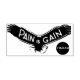A majestic eagle, soaring high with its wings outstretched. The eagle's gaze is fierce and determined, symbolising strength and perseverance.Text: "Pain is Gain" is inscribed in bold, sans-serif font beneath the eagle. The text is positioned horizontally and centred below the image.Size: The stamp is approximately 2 inches by 1 inch.Colour: The eagle and the text are imprinted in a deep, rich blue ink.