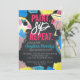 Throw a fun girls night with a paint and sip bachelorette party filled with colours and lots of adult beverages. Design features typography "paint. sip.repeat" as well as details you can simply customise with your name and party info against a chalkboard background. Featuring paint splatters complete with yellow, red, and blue paint splatters as well as hand painted paint palette, paint brush, and glass.