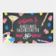 It's time to paint and loosen up! Give your bridal squad a little something to remember their fun paint and sip party with a paint and sip party welcome banner. Simply customise with the name of the bride and date of the party for a fun personal feel. Design features typography "paint sip repeat" as well as paint splatters complete with yellow, red, and blue paint splatters as well as hand painted paint palette, paint brush, and glass against a chalkboard background.