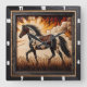 Bring the beauty of nature into your home with this stunning wall clock featuring a Paint horse trotting through a sunlit field of tall grass. The clock is elegantly framed by a ½-inch flat black wooden border, showcasing deep carvings and rugged burn marks in red, grey, and black that add a striking contrast to the lighter wood tones. Crafted to mimic the look of real wood, this piece offers rustic charm without the weight or maintenance of actual materials.
