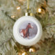 Photograph of a Paint Horse running through snow, displayed on a Christmas Ornament.