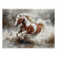 Paint Horse Running Through Water Poster