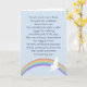 My Last Wishes card with rainbow and dove An inspirational and comforting poem for those in mourning. These final wishes give the reader hopeful words and encouragement to remember happy times. The card is pale blue with a rainbow and white dove design. It features original words based on universal themes, and this text was created specifically for the card by the designer. Not for unauthorised reproduction.