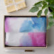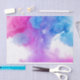 This design features an image of paint in water. The red and blue colours are floating and spreading, mixing together to create shades of purple. The whole effect looks like plumes of smoke.