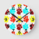Paint Splatter Dog Paw Print Pattern Round Clock