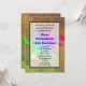 The background of this paintball themed birthday invitation is composed of browns, yellows and green giving it a rugged masculine grunge look. A semi-transparent overlay with a black border in the centre for you to customise with your party details. A bright neon multicolored paint splatter behind.