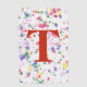 Fun paint splatter in light blue, green, yellow, orange, red, pink and purple watercolors. Stylish monogrammed golf towel. Personalise with your initial shown in red text on a white background. Fun for anyone who loves a game of golf at the golf course or golf range. Click Customise to change background colour. Original Graphic Artwork design by TamiraZDesigns.