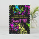 Paint Splatter Sweet 16 Birthday Party Invitation for girls or anyone! Great for a boys or girls skating or laser tag glow in the dark birthday party. Hip, fresh and awesome paint splatter design in vibrant, bright neon colours of pink, green, blue, and yellow against a high-contrast black background. Abstract expressionism artwork in a super bright colour scheme. Customise it with your own name or text! Design Copyright © CuteComfy.